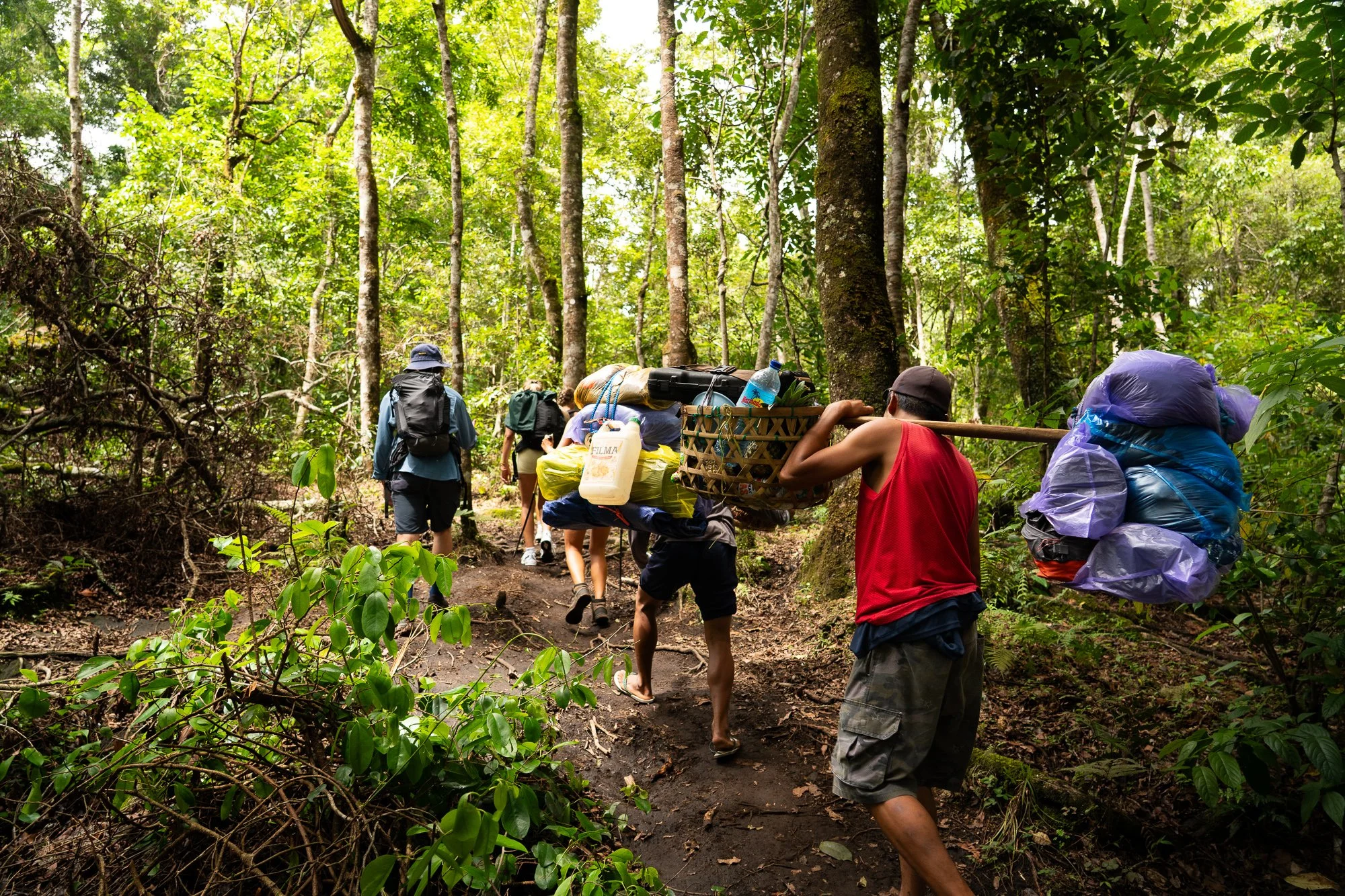 Our porters quickly became the main attraction and the talk between the group of us on our tour with two woven baskets full of food, camping equipment and all the essentials bridged together by a thick cut bamboo trunk, slung over one shoulder. If that in itself wasn’t impressive, that hiked the entire three days in flip flops.